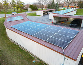 The solar system consists of 101 solar panels. This is a 41 kilowatt (kW) system that will produce about 47,000 kilowatts per hours (kWh) of electricity.